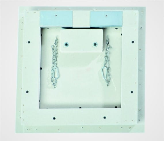 Ревизионная заслонка состоит из алюминиевых профилей со вставкой из гипсокартонных плит типа DF (GKF) 40 мм (F120).