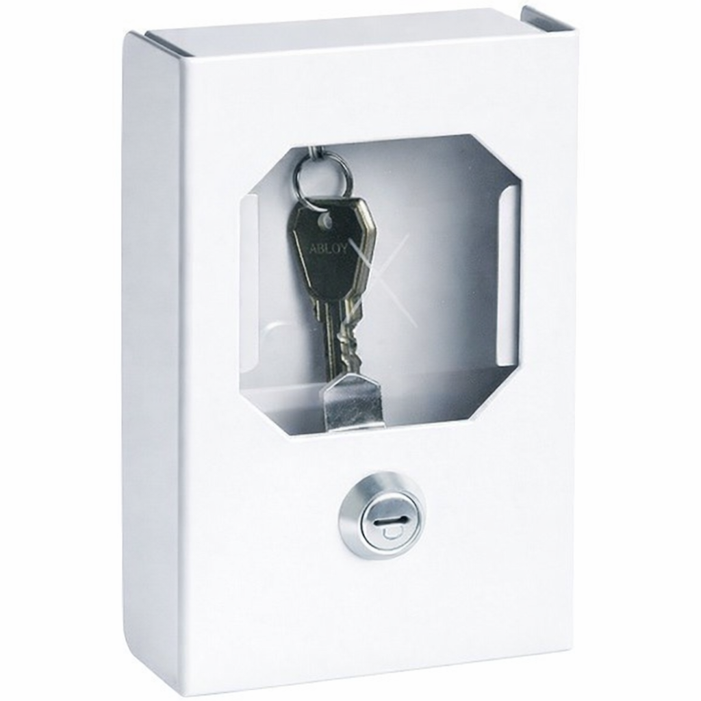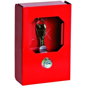 Metalowa szafka przeznaczona do przechowywania klucza do drzwi ewakuacyjnych.