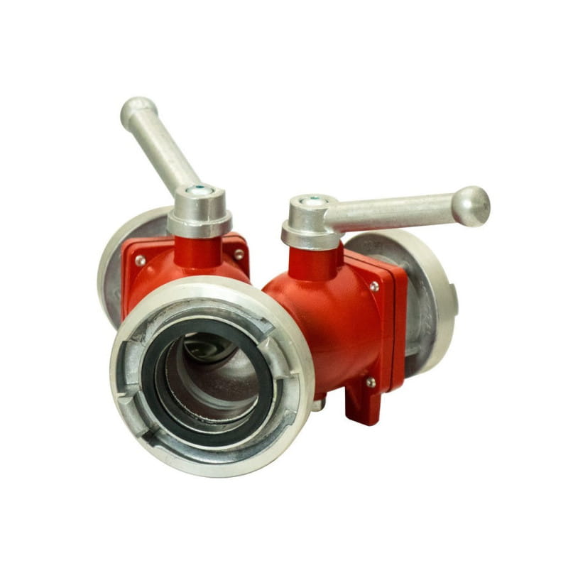 Rozdzielacz kulowy służy do rozdzielania strumienia wody z głównej linii wężowej na dwie lub trzy linie. Wyloty rozdzielacza są wyposażone w niezależne zawory kulowe służące do zamknięcia przepływu.