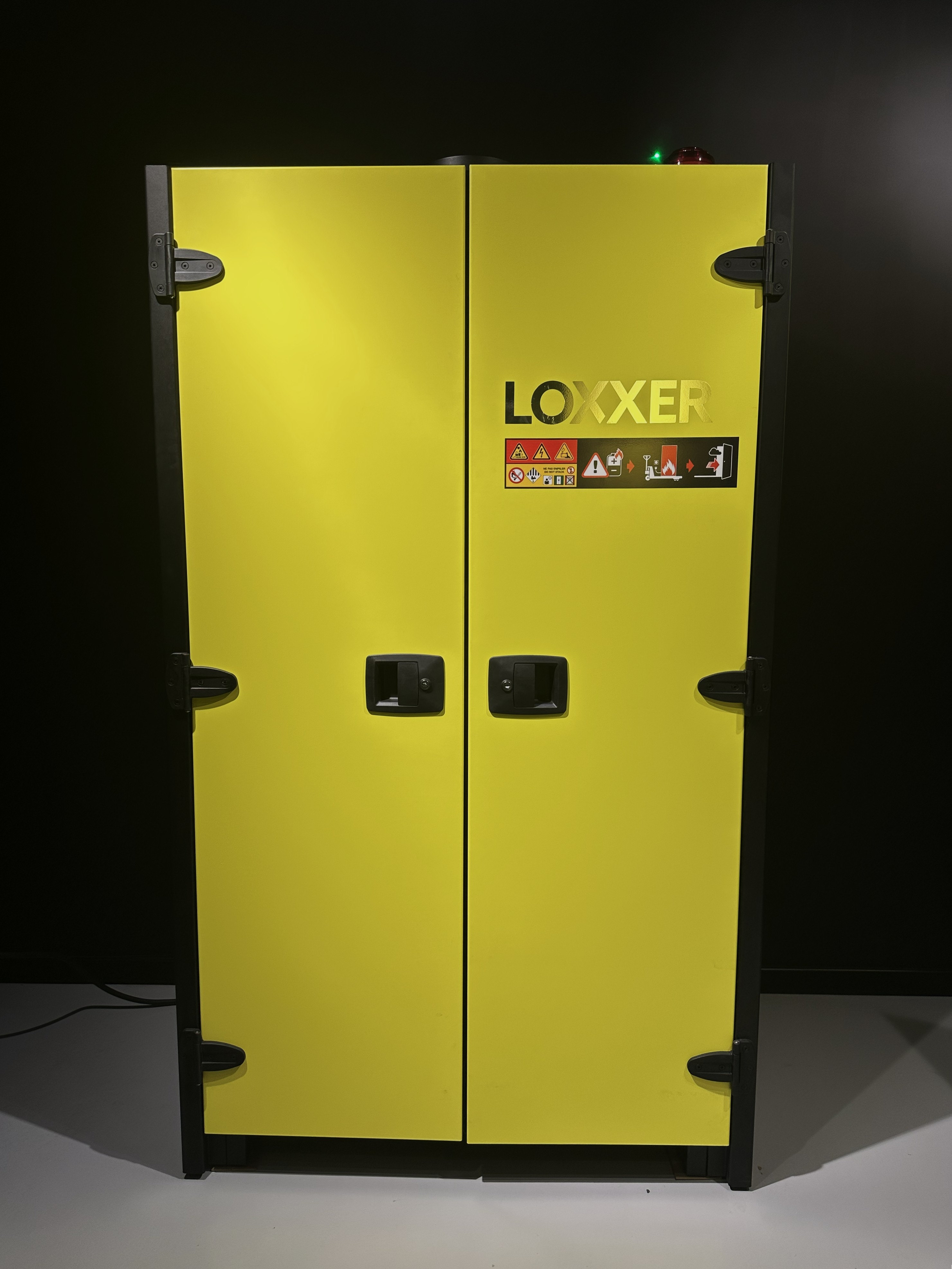 to flagowy model serii LOXXER – niezależne, wolnostojące urządzenie stworzone z myślą o maksymalnym bezpieczeństwie podczas przechowywania i ładowania akumulatorów litowo-jonowych. Konstrukcja szafy została zaprojektowana tak, aby utrzymać zagrożenia związane ze zjawiskiem ucieczki termicznej (thermal runaway) wewnątrz komory oraz zapobiec rozprzestrzenieniu skutków ewentualnego pożaru.
