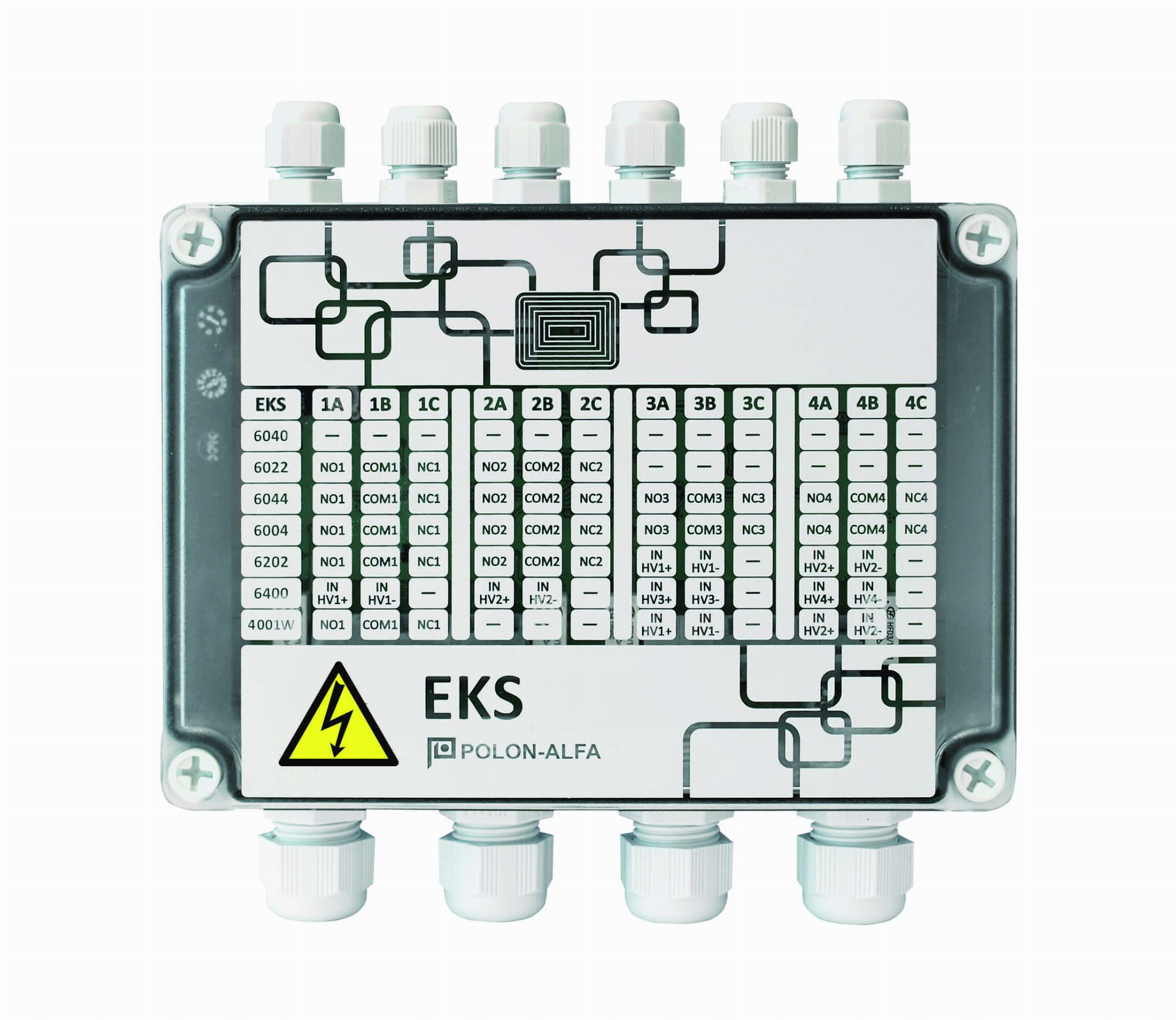 Element EKS-6022 wyposażony w 2 wejścia niskonapięciowe, 2 wyjścia.