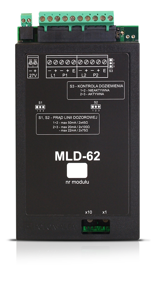Moduł ten zasilany jest z przetwornicy modułu MLD-61. Moduł ma możliwość podłączenia 2 linii (pętli) dozorowych. Na każdej z pętli można zainstalować do 250 elementów liniowych w trybie pracy linii ustawionym na POLON 6000 i do 127 elementów liniowych w trybie pracy linii ustawionym na POLON 4000. Każda linia dozorowa ma niezależnie ustawiany tryb pracy.