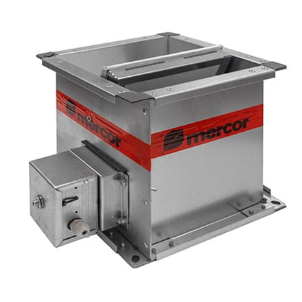 mcr FID S/S c/P – przeciwpożarowa klapa odcinająca do przewodów wentylacyjnych z siłownikiem ze sprężyną powrotną – zamykanie i otwieranie klapy za pomocą siłownika.