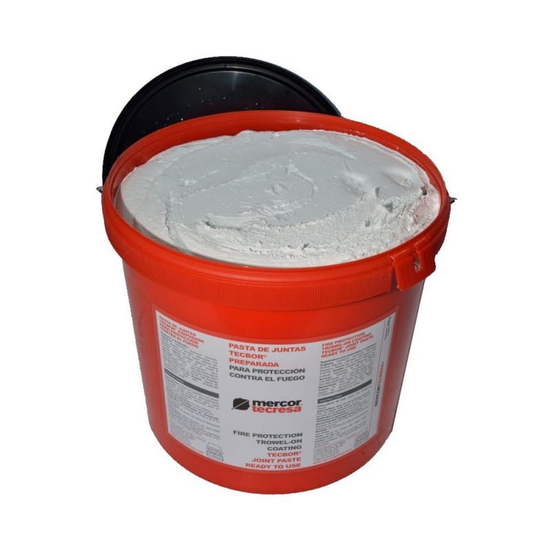 Uszczelniacz do płyt mcr TECBOR JOINT PASTE READY TO USE 25 kg to ablacyjna powłoka zawierająca wodną dyspersję polimerów, która wywołuje endotermiczną reakcję w przypadku pożaru, zapobiegając w ten sposób rozprzestrzenianiu się ognia i ograniczając rozprzestrzenianie się ognia i dymu.