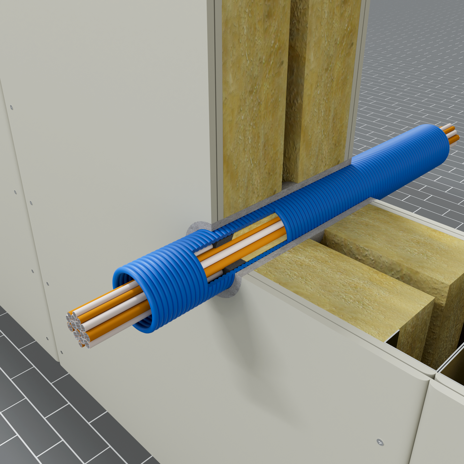 Ściana musi mieć minimalną grubość 100 mm. Musi mieć konstrukcję wykonaną z profili stalowych lub drewnianą pokrytą z obu stron minimum 2 warstwami płyt o grubości minimum 12,5 mm.