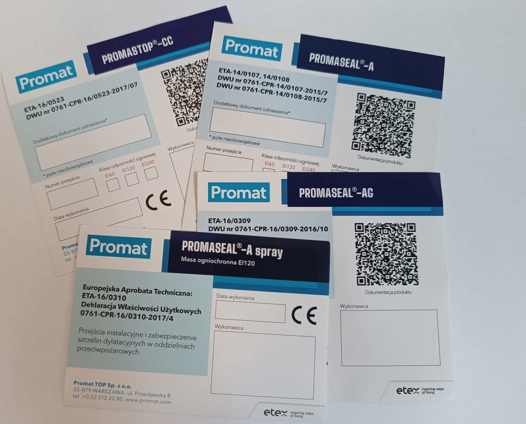 Według przepisów każde wykonane przejście ppoż. musi zostać odpowiednio oznaczone z uwzględnieniem zastosowanego produktu, klasy odporności, numeru przejścia, ważności aprobat technicznych i certyfikatów zgodności oraz wykonawcy jaki wykonał dane przejście. Etykieta powinna znaleźć się po obu stronach zabezpieczanej przegrody.