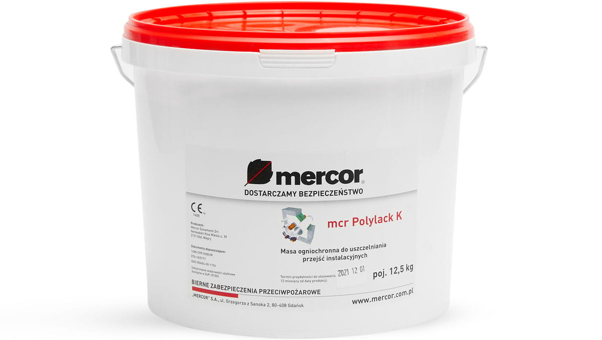mcr Polylack K jest pęczniejącą masą w postaci gęstej szpachli. Po naniesieniu w postaci powłoki lub wypełnienia, przy oddziaływaniu wysokiej temperatury masa tworzy na powierzchni termoizolacyjną pienistą warstwę węglową, która zatrzymuje palenie się polimerowej powłoki izolacyjnej we wczesnym stadium i zapobiega rozprzestrzenianiu się płomienia na zabezpieczonej powierzchni.