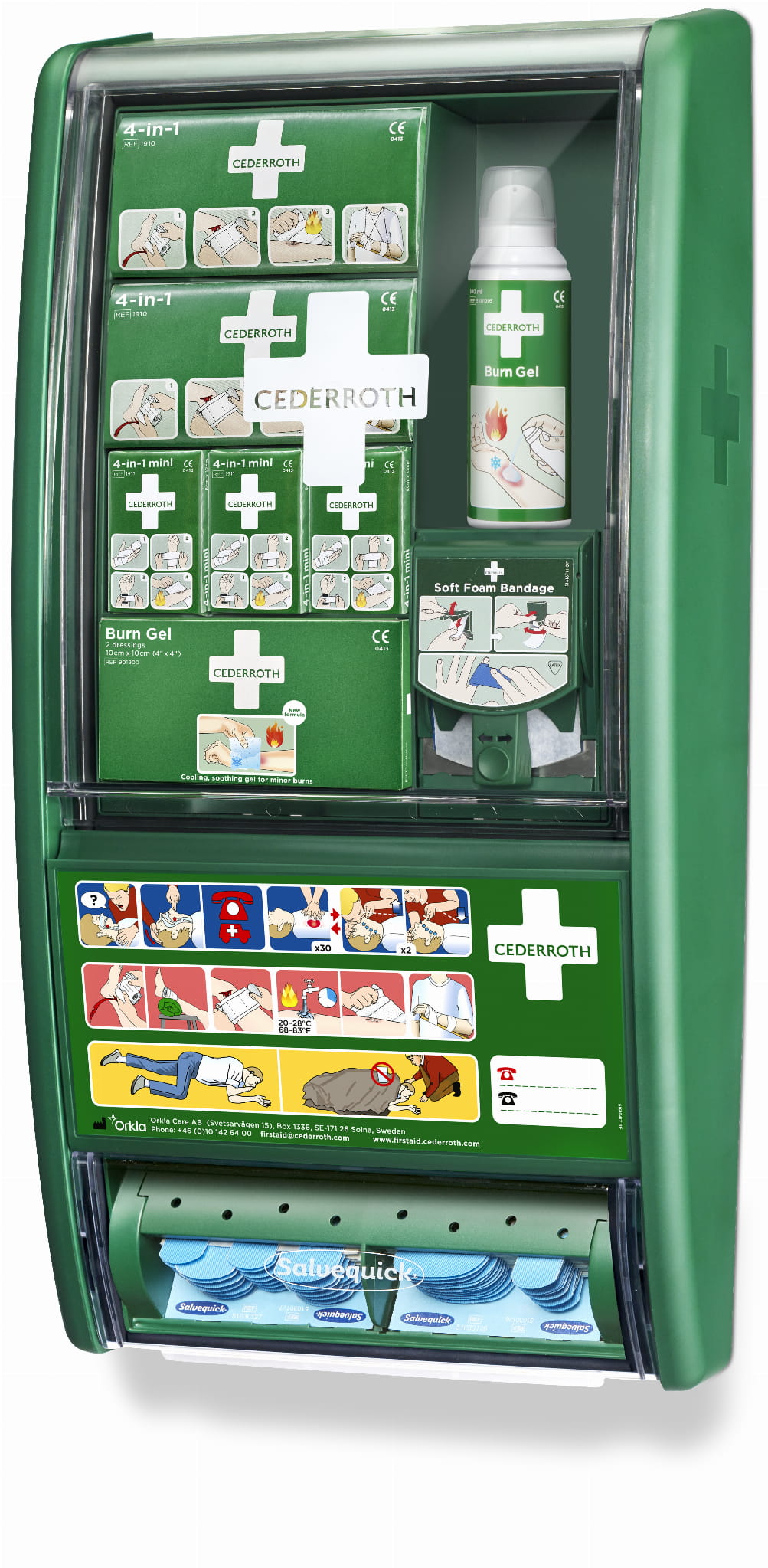 Apteczka pierwszej pomocy Cederroth First Aid & Burn Station - teraz z nowym żelem Cederroth Burn Gel 100 ml - to następczyni Cederroth First Aid & Burn 490960.
