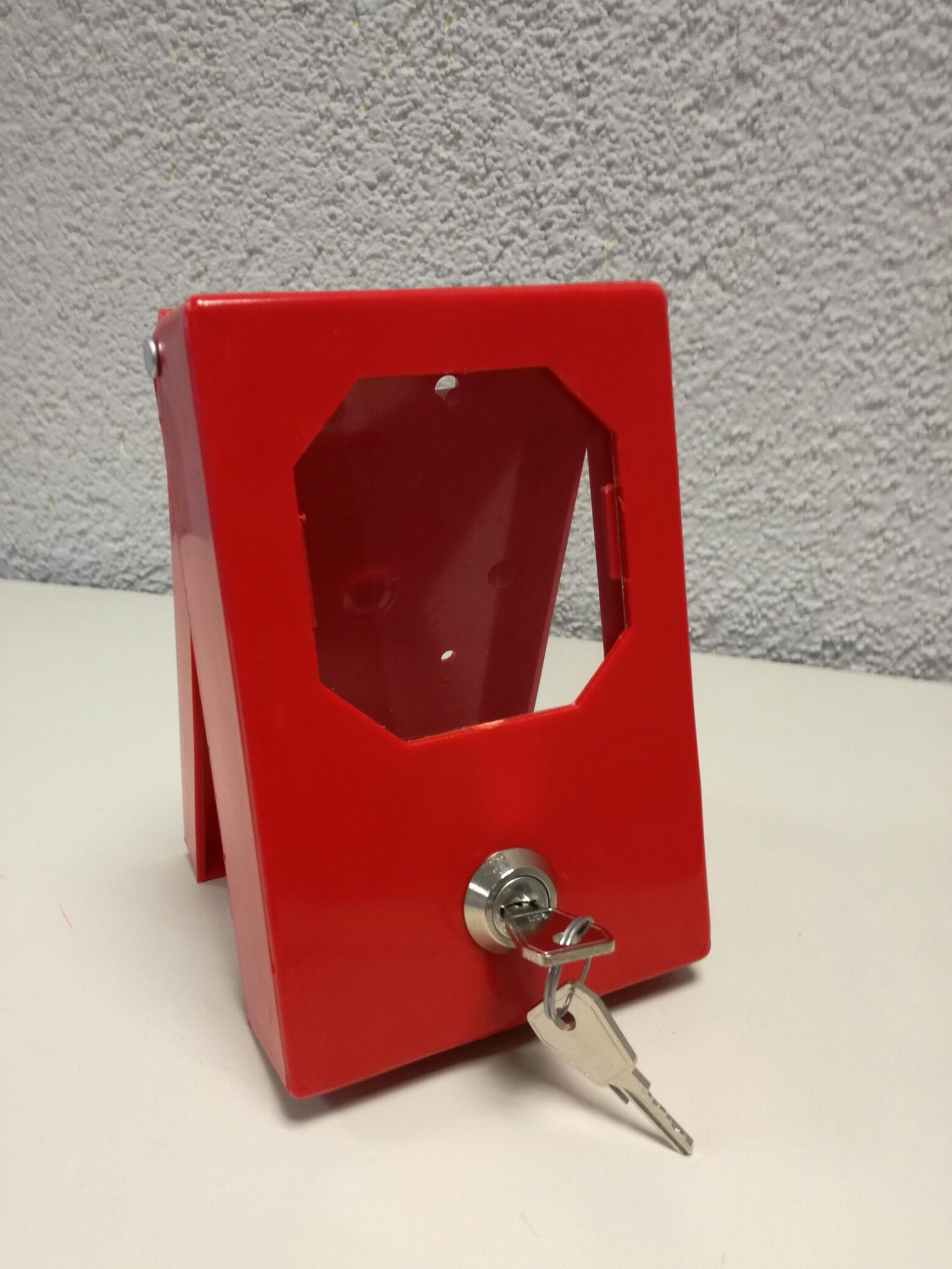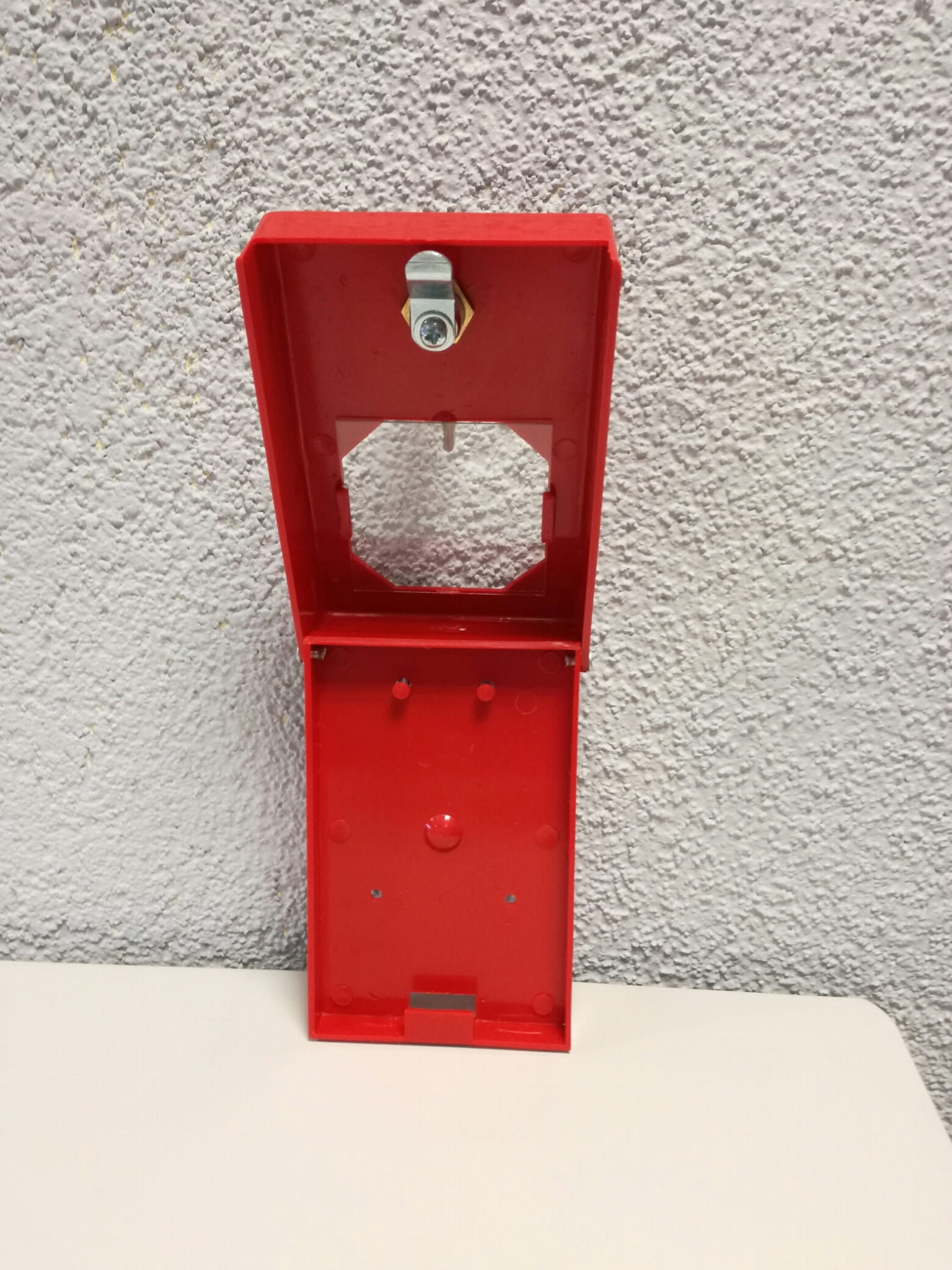 Szafka z tworzywa przeznaczona do przechowywania klucza do drzwi ewakuacyjnych.