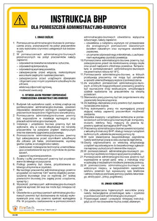 Instrukcja BHP zawiera najważniejsze zasady bezpieczeństwa, których zobowiązani są przestrzegać użytkownicy, właściciele i zarządcy pomieszczeń administracyjno-biurowych.