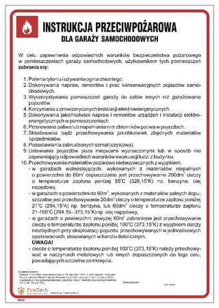 Znak "Instrukcja przeciwpożarowa dla garaży samochodowych" Signproject