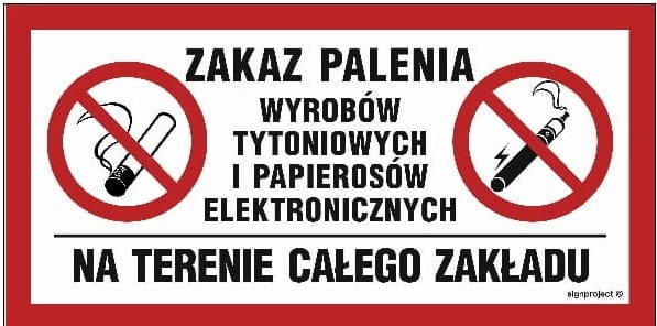 Znak "Zakaz palenia wyrobów tytoniowych i papierosów elektronicznych na terenie całego zakładu " SignProject