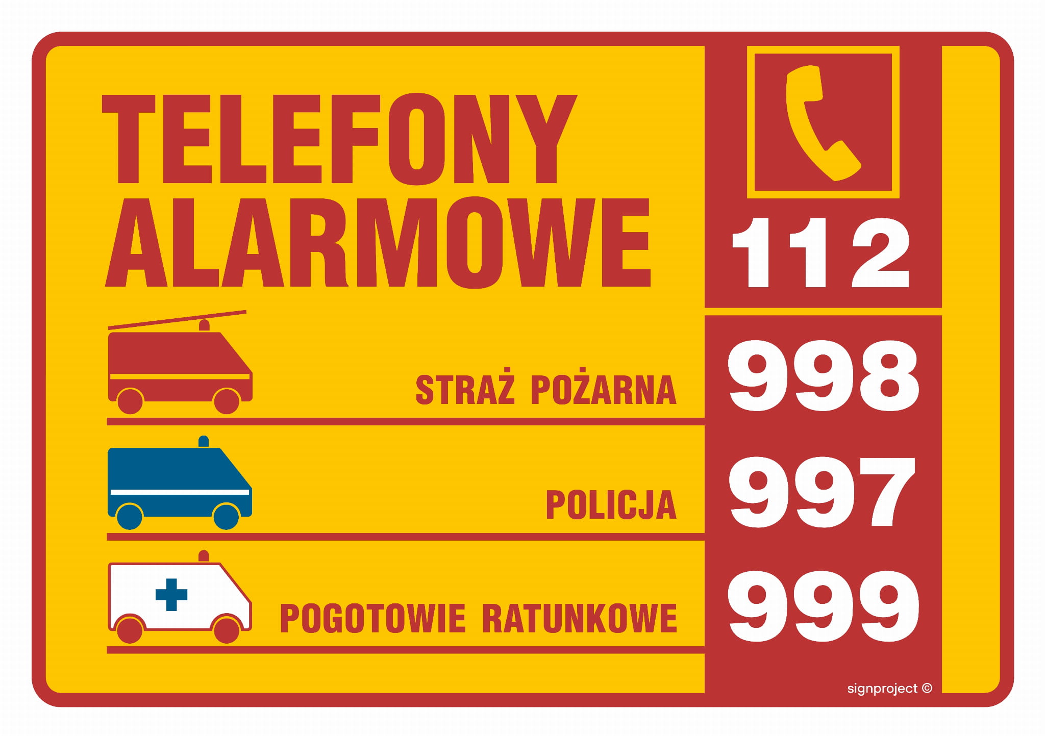 Znak "Tabliczka telefonów alarmowych" Signproject